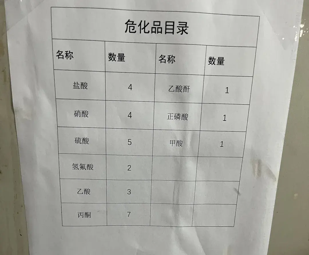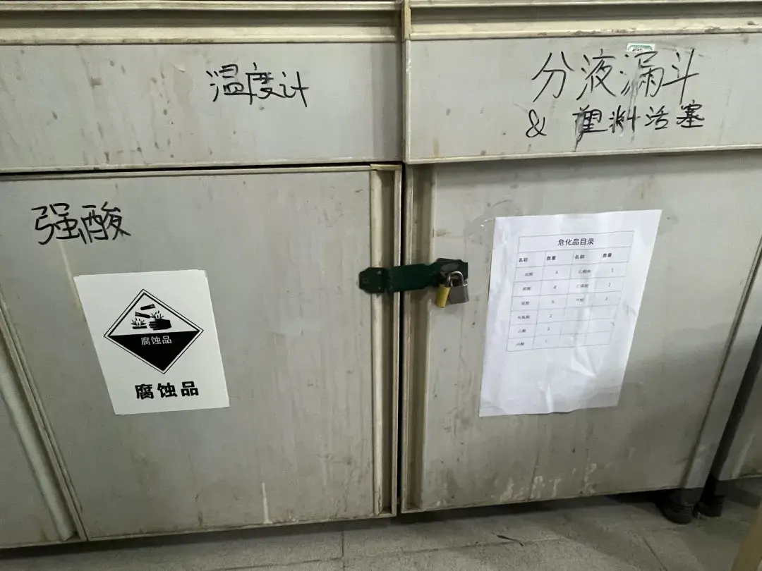 经排查,该校实验室普遍在危化品存储、应急救援设备、设备维护等方面存在严重的安全隐患:
