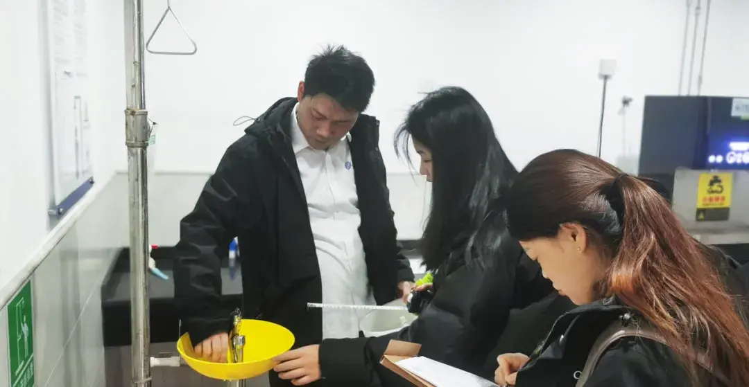 经巡检,台雄团队发现,高校多个应急喷淋洗眼装置洗眼出水流量、水压、水流高度、响应速度等指标不合规,共检出不合规应急救援设备超过320台,且安装位置缺少目视化标贴。